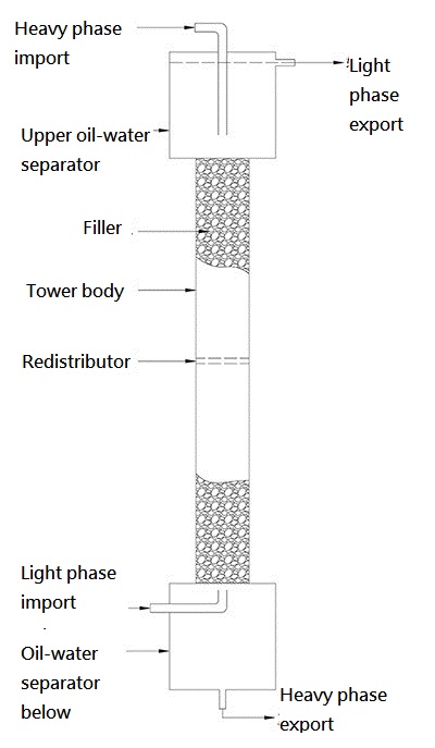 A packed extraction tower is a tower-type device used in liquid-liquid extraction processes. It achieves sufficient contact and mass transfer between two phases (light and heavy phases) through a packing layer, thereby separating and enriching the target components. It has a simple structure, flexible operation, and is widely used in chemical, petroleum, pharmaceutical, and environmental protection fields.