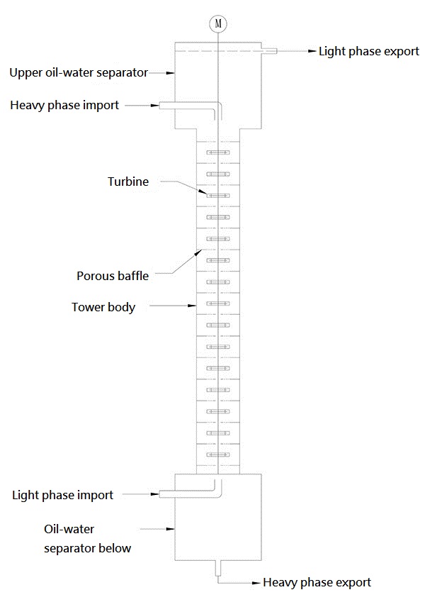 A turbine extraction column is a mechanically stirred extraction device equipped with a perforated plate. The widely used Kuhni column is a typical example of a turbine extraction column.